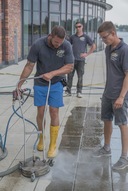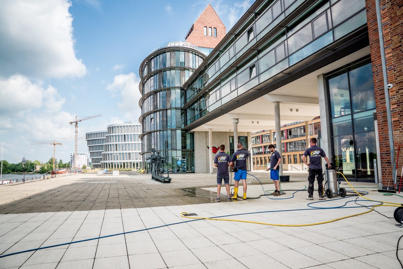 Cleanforce entfernt Fahrbahnmarkierungen bei Airbus in Finkenwerder.